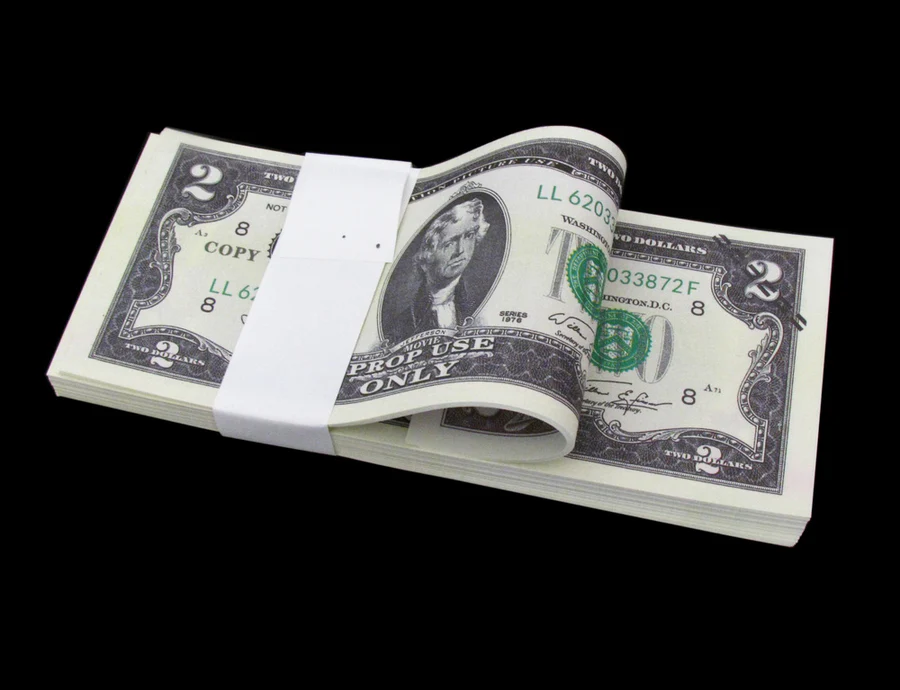 100x $2 Full Print Bills Stack Copy Dollar Movie Prop Money New Style